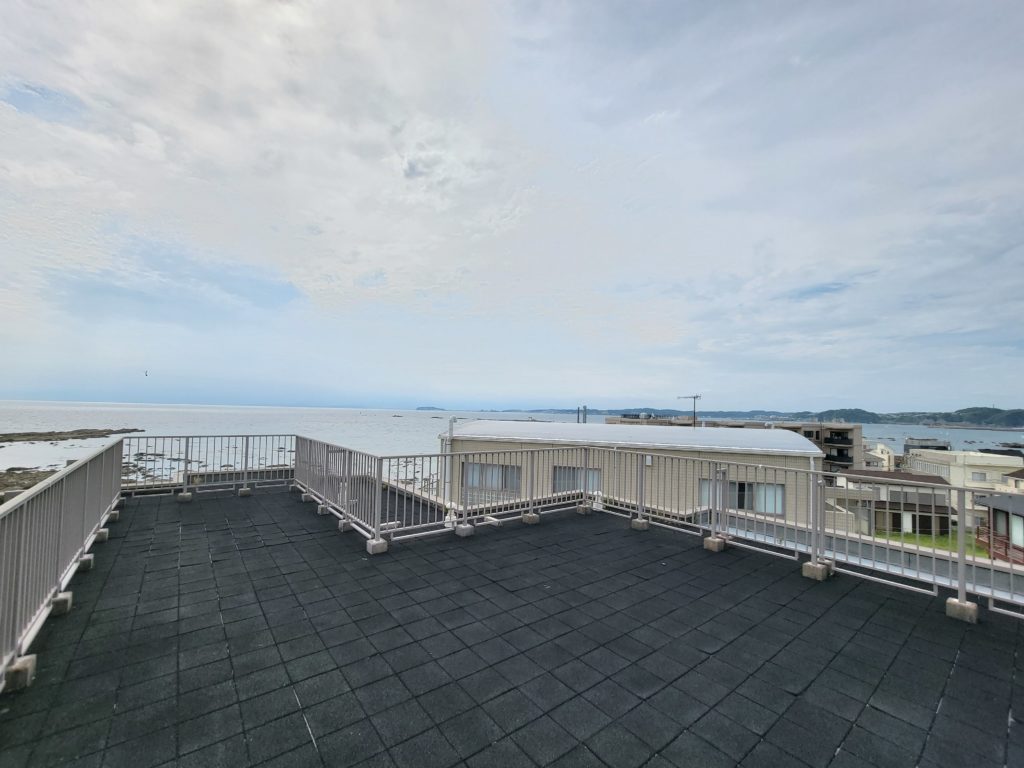 | 設備 | ・360度パノラマ眺望が魅力の屋上ルーフバルコニー ・高温差湯式オートバス ・室内の床段差をなくしたフラットフロア ・共用部にシャワーブース・サーフボード置場 ・敷地内駐車場空有 (機械式による制限あり)月額11,000円~12,000円 (2025年12月現在) |